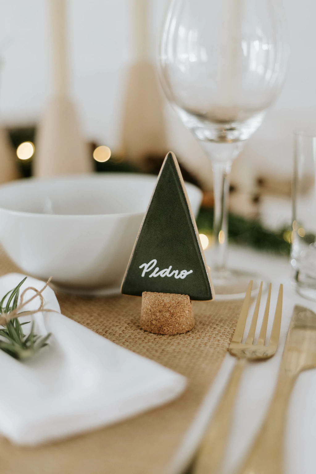 Pequenas árvores de cerâmica, moldadas à mão, uma a uma, e suportadas por uma base de cortiça